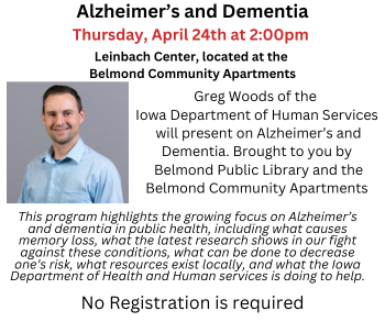 The Friends do so much to support the library. This includes a yearly allocation for the purchase of books, maintaining 4 little free libraries in Belmond, hosting bilingual story time during the Cinco de Mayo festival, their Books for Kindergarteners initiative, and more! They are able to provide these things through fundraising and volunteering. Perhaps you have visited the Friends annual book sale during the Fall Festival, or the table at the summer market, or maybe even an omelet breakfast thanks to the Knights ot Columbus.
