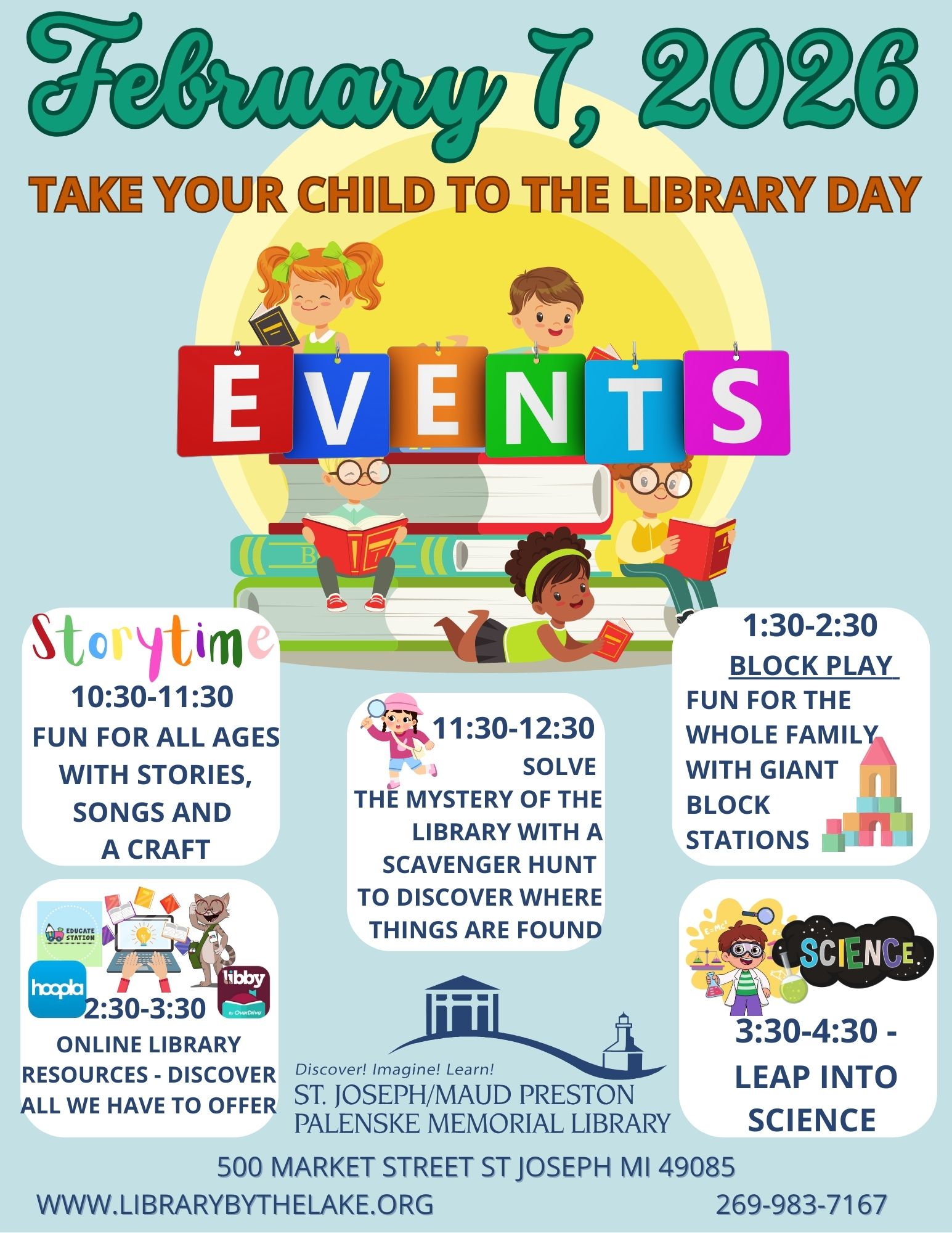 Check out all the things we have to offer! Bring your child to the library for this special event on Saturday, February 7th.