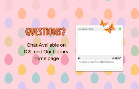 Questions? Ask a Librarian. Live library chat is available on D2L and our library home page.