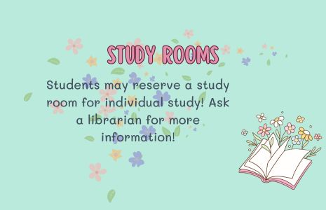 Study rooms. Students may reserve a study room for individual study. Ask a librarian for more information!